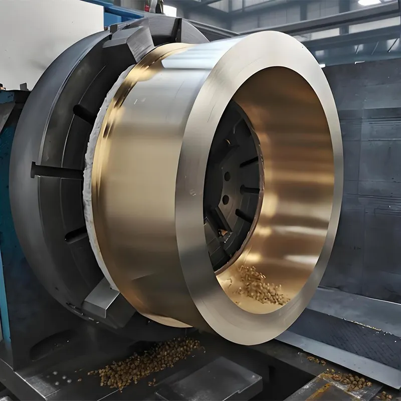 A feldolgozóiparban az alkatrészek minőségi követelményeinek folyamatos javításával a centrifugális öntéstechnológia pozíciója a rézötvözet alkatrészek gyártásában megszilárdul. Ez az eljárás nemcsak nagyméretű ón-bronz rézhüvelyek előállítására alkalmas, hanem a bimetál kompozit öntvények területén is nagy lehetőségeket mutat.